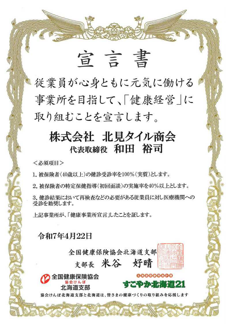 従業員が心身ともに元気に働ける事業所を目指して「健康経営」に取り組むことを宣言しました。
